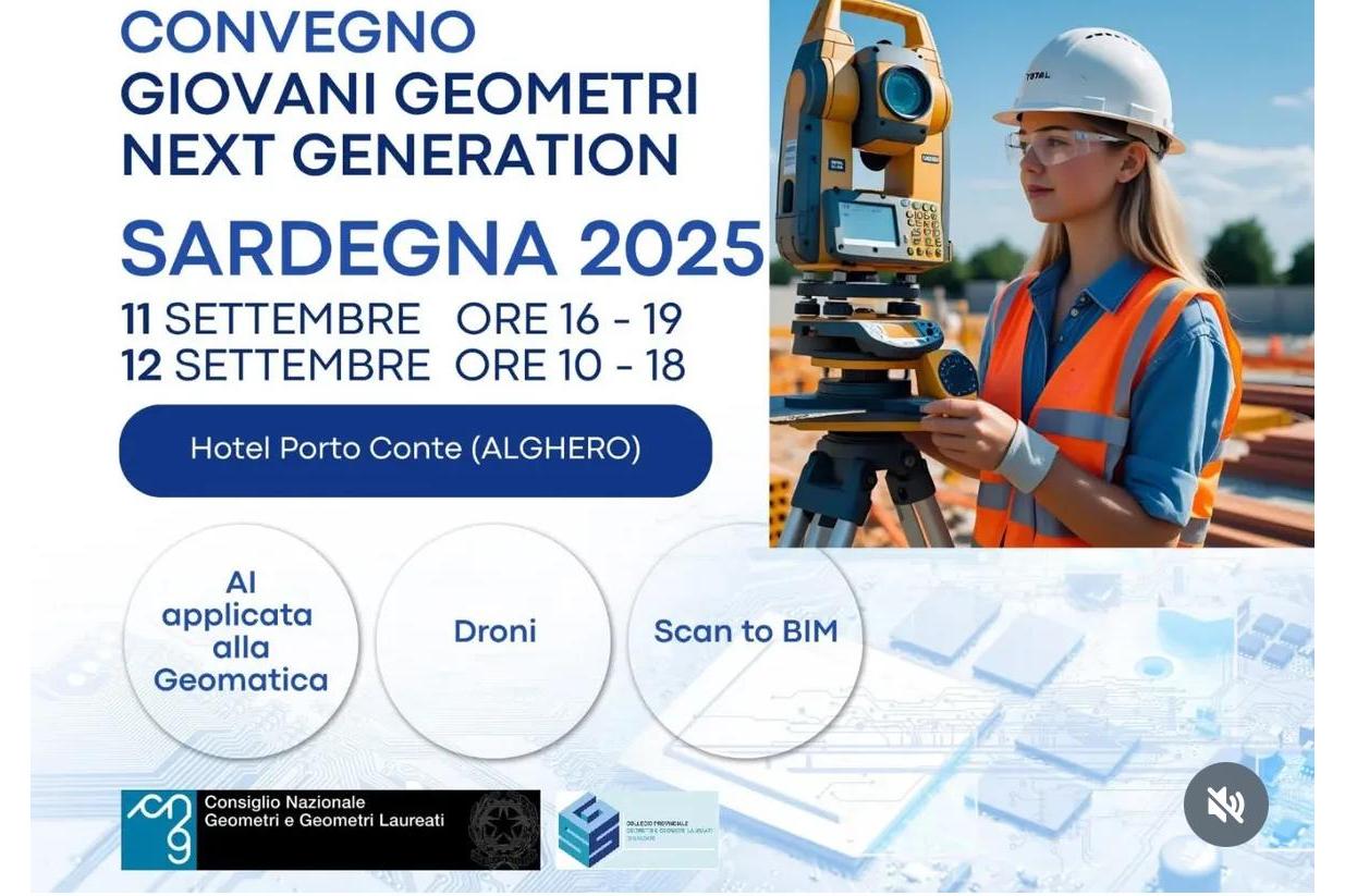 In collaborazione con la Commissione Nazionale Giovani CNGeGL, il Collegio Provinciale Geometri e Geometri Laureati di Sassari organizza il Meeting Nazionale Giovani Geometri Next Generation 2025. Un appuntamento dedicato ai liberi professionisti e, in particolare, ai giovani iscritti. Due giornate di confronto e approfondimento sui temi più innovativi per la professione, quali: Linee guida case green, AI applicata alla Geomatica, droni, Scan to BIM.