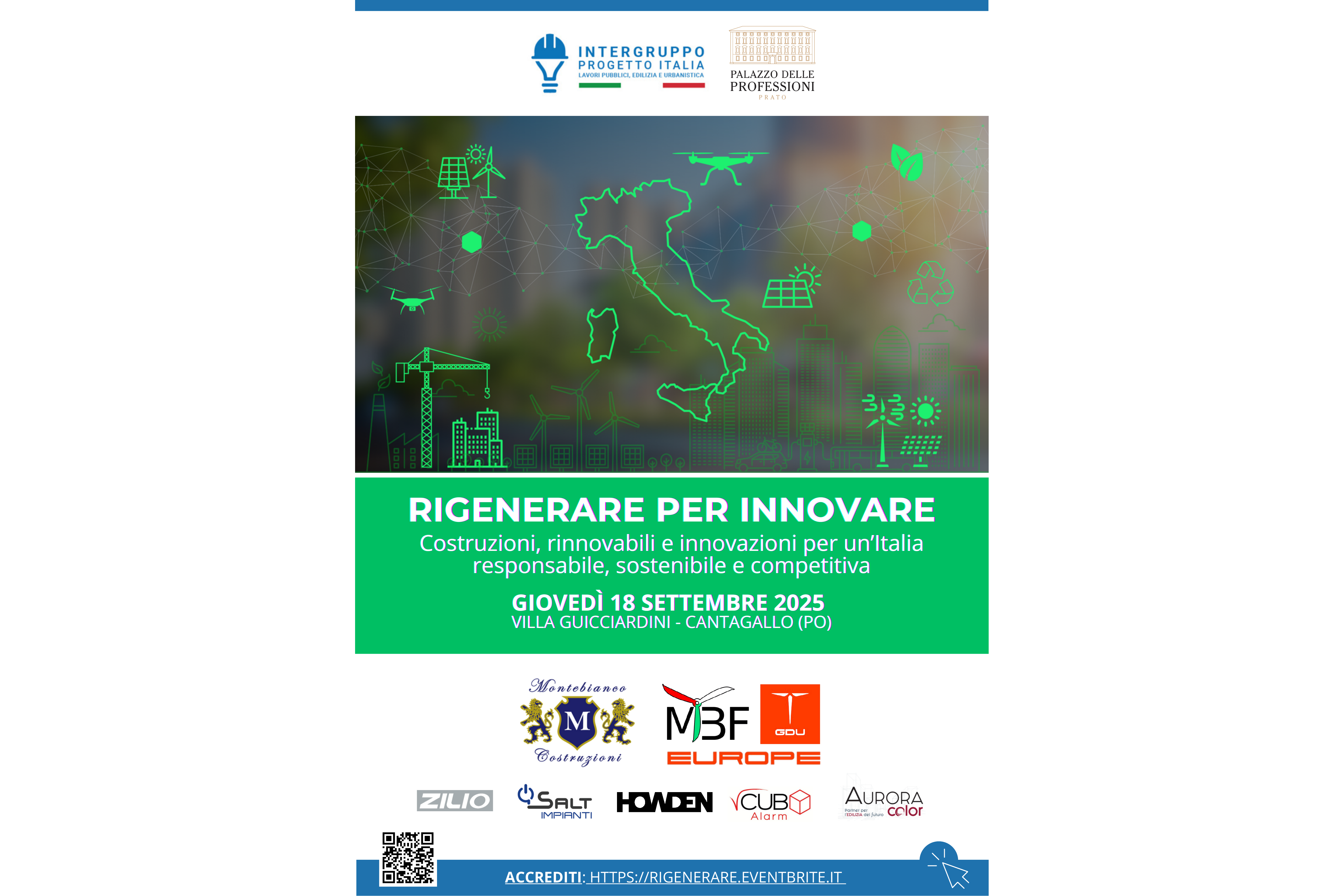 Con Rigenerare per innovare, il mondo delle costruzioni, delle energie rinnovabili e dell’innovazione tecnologica si riunisce per costruire insieme la visione di un’Italia più resiliente, sostenibile e bella.